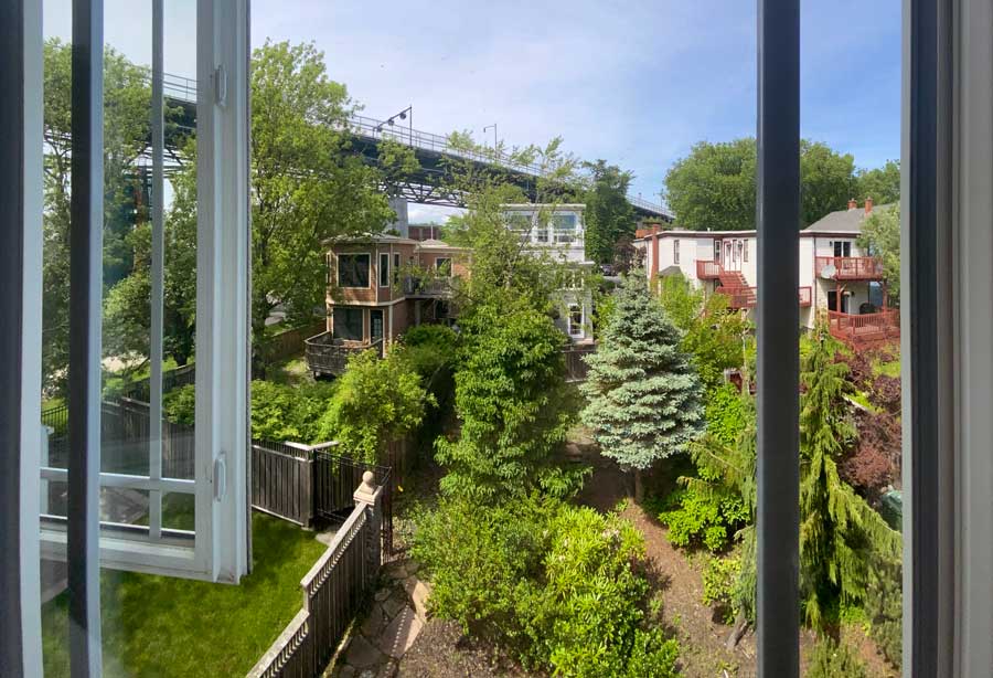 townhouse overlooking a lush green backyard. Whether